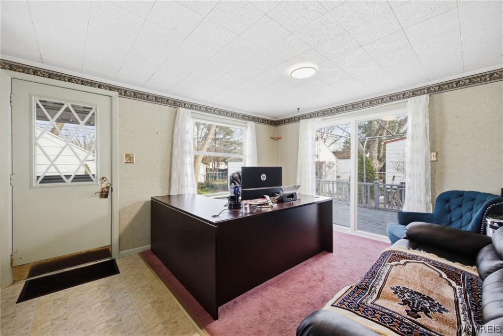 Quaint home with 4 beds and 2 full baths set on a wide, quiet street in Tonawanda. Lots of natural sunlight permeates throughout the house. Bonus room with sliding door adds to the charm, leading out onto a large deck, perfect for those summer days. Large workshop in the basement. Roof is 6 years old with updated electrical and newer mechanics. Hardwood under majority of the flooring. Close to Blvd mall and all the main shopping areas All appliances stay including a new S/S refrigerator. New vinyl flooring and newer mechanics.. Due to unforeseen circumstances, the new vinyl flooring for the stairs, kitchen and sunroom is not completed. This will be done before closing. Showings begin Tuesday 4/7 at 3pm. Open house on Wednesday, 4/8/2026 from 4-6pm and Saturday, 4/11/2016 from 1.30pm to 3.30pm. Offers due at noon on Monday, 4/13/2026. No Escalations clauses.