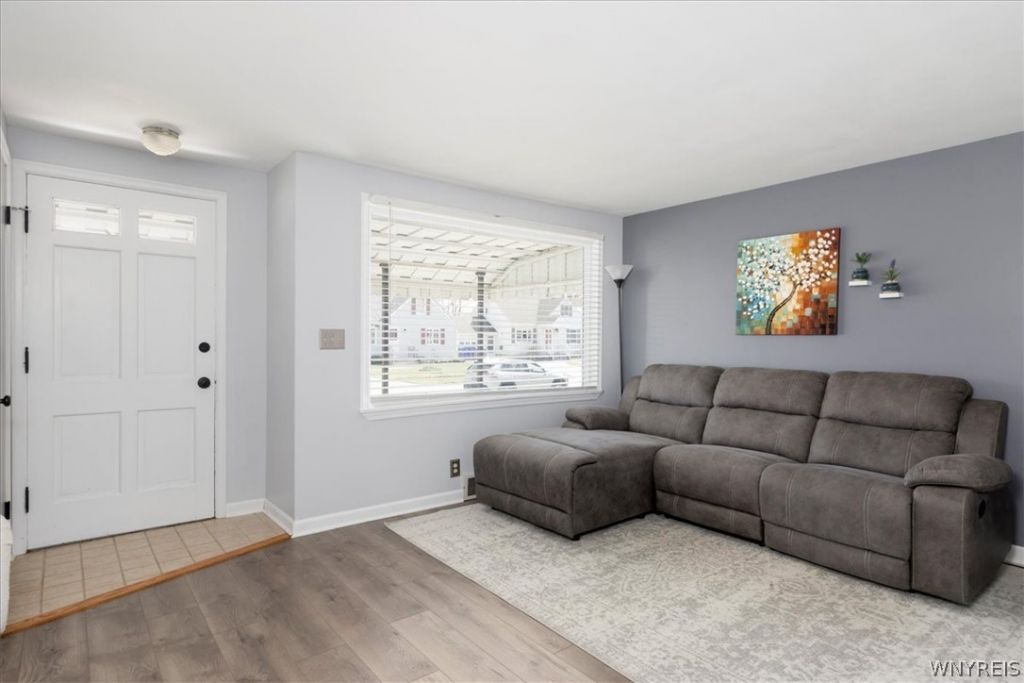 Charming and move-in ready Cape Cod in desirable West Seneca! This well-maintained 3-bedroom, 1-bath home offers a perfect blend of classic character and modern updates. The bright, updated kitchen and living room feature beautiful luxury vinyl flooring ('22), while the first-floor bedrooms showcase timeless hardwood floors. Upstairs, you'll find a spacious third bedroom with newer carpeting. The renovated bathroom boasts stylish subway tile and a tile floor. Enjoy year-round comfort with central A/C and peace of mind with newer electrical service (100 amp) and all new vinyl replacement windows. The partially finished basement adds extra living space and includes glass block windows, plus a convenient laundry area with washer and dryer included. Stainless steel refrigerator and stove also stay-making this home truly turn-key. Don't miss this fantastic opportunity in a great location close to shopping, dining, and more! Negotiations begin Monday 4/20 at 12pm.