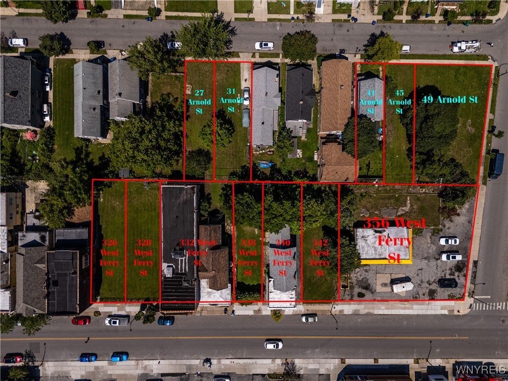Prime REDEVELOPMENT opportunity! Located within an OPPORTUNITY ZONE and potential for BROWNFIELD TAX CREDITS, this is the perfect site for a new build mixed use apartment and retail structure. Situated on Buffalo's West Side, this twelve parcel, 1.22 acre site is perfect for new development with an ideal footprint to work with. Located primarily on West Ferry Street and Arnold Street, all 12 parcels are adjoining and form a near contiguous site for maximum functionality. Seven of the parcels are situated on West Ferry St. and span more than half a block. These are all zoned N-2C which allow for a range of residential and retail uses. There is a total of 332' of frontage and four curb cuts. These parcels currently stand as a mixture of vacant land mixed use and retail structures. Address numbers include: 326, 328, 332, 338, 340, 342, 356. Five of the parcels are situated on Arnold St. and are all zoned N-2R. There is a total of 182' of frontage and one driveway. These parcels stand as a mixture of vacant land and a single-family residence. Address numbers include: 49, 45, 41, 31, 27. Portfolio is complete with maximum corner exposure to include 215' of frontage on Parkdale Ave. Properties are located on a walkable street with a vibrant local business scene. Located less than 5 minutes from the Elmwood village, less than 5 minutes from major highway access, quick travel to downtown and the Buffalo Niagara Medical Campus, and minutes from the peace bridge entry into Canada.