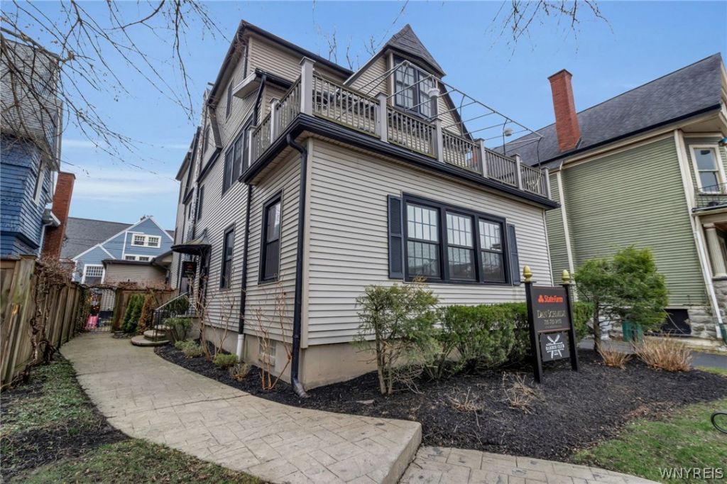 Exceptional mixed-use property in the heart of Elmwood Village! This versatile two-family home with commercial potential offers the perfect blend of residential comfort and business visibility in one of Buffalo's most vibrant and walkable neighborhoods. The first floor, currently used as an office presents an excellent opportunity for a small business, studio, office, or retail space, with strong foot traffic and high visibility along Elmwood Avenue. The upper boasts a 2 story luxury 3 bedroom 2 bath apartment with beautiful cherry wood floors throughout. The kitchen is a Chef's delight with SS appliances with granite counters & an abundance of cabinetry. There is also a large living room with gas fireplace, formal dining room & large main bedroom with a walk in closet & spa like bathroom. A bonus to this apartment is the open porch with the best view of the Elmwood Strip. Additional highlights include off-street parking with a 2 car attached garage & a patio with a private fenced in yard. It's close proximity to local shops, cafes, restaurants, parks, and cultural attractions just enhances this properties location! This is a great opportiunity to own in one of Buffalo's most thriving communities. Also Listed ML b1673021