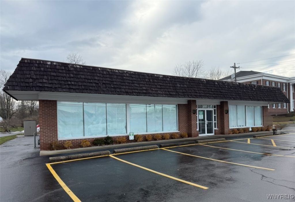 4,315 square feet of office space is available for you to customize. The space features a slate floor entryway and includes two restrooms, a break room with sink, cabinets and counter space, storage room and coat closet. Located in a business district, this space is a blank canvas for you to finish any way you want. Make this space your own. Conveniently located just 1.2 miles from Transit Road.