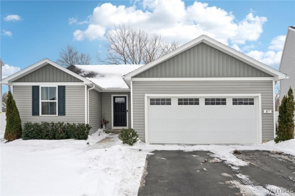 Edit mortgage details for a more accurate paymentWhy build when you can be settled in by Spring? Beautiful 2020 built ranch home with modern amenities. As you enter the home you'll be greeted by luxury vinyl flooring and tasteful, current paint colors. Enjoy entertaining in the open concept kitchen, dining and living room for today's sought after style of living. Kitchen features SS appliances, granite counters, island with breakfast bar and a pantry. Large primary bedroom features ensuite with walk in shower and walk in closet. Two bedrooms and one full bath are also located on the main level of the home. Benefit from the convenience of first floor laundry. In 2023 lower level was partially finished by adding a third full bath, luxury vinyl flooring, and a dry bar with beverage refrigerator which adds about 600 sq. ft of bonus space to enjoy while allowing natural light from the egress window in. Basement is clean, dry and has 8 foot ceilings. Mechanics such as tankless water heater and large area for plenty of storage are located in separate area of lower level. Lovely private backyard with concrete patio, privacy fence and landscaping were added to enjoy beautiful summer days with views of the lush fields behind the home. Home is conveniently located near Niagara Falls Blvd, 990, and 290 for ease of commute and day to day living. Home features attached 2 car garage, has wonderful curb appeal and is ready to welcome its new owners.