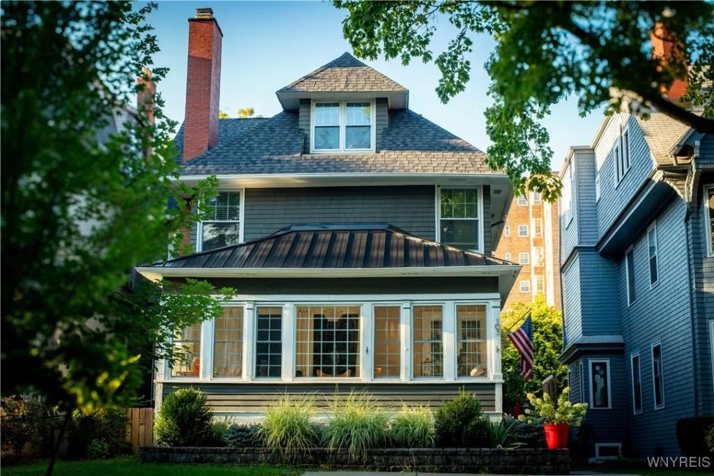 Edit mortgage details for a more accurate paymentWelcome to 103 Highland Ave! Fantastic traditional Elmwood Village home with tasteful modern updates and extensive charm! Stately side entrance opens to a lovely foyer featuring a beautiful staircase and large original arched window. Spacious living room offers gleaming hardwood floors, built ins, and gas fireplace(NRTC); leads to sun-lit four seasons room with walls of windows for exceptional natural light. Beautifully updated kitchen includes breakfast bar, gas fireplace(NRTC), coffee station with additional storage, and overlooks lovely yard; formal dining room is perfect for entertaining! Primary suite stuns with built in armoire, and en-suite bath with double vanity & heated floors. Three generous additional bedrooms (one currently used as second floor laundry), and updated hallway bath. Fully finished third floor features bonus family room with vaulted ceiling and skylights, and full bath. Outside, enjoy the convenience of a double wide parking pad. Backyard oasis features covered patio and large Trex deck, hot tub, grill area, and shed. Mini-split A/C, very new roof, and whole house generator; nothing to do but move in!